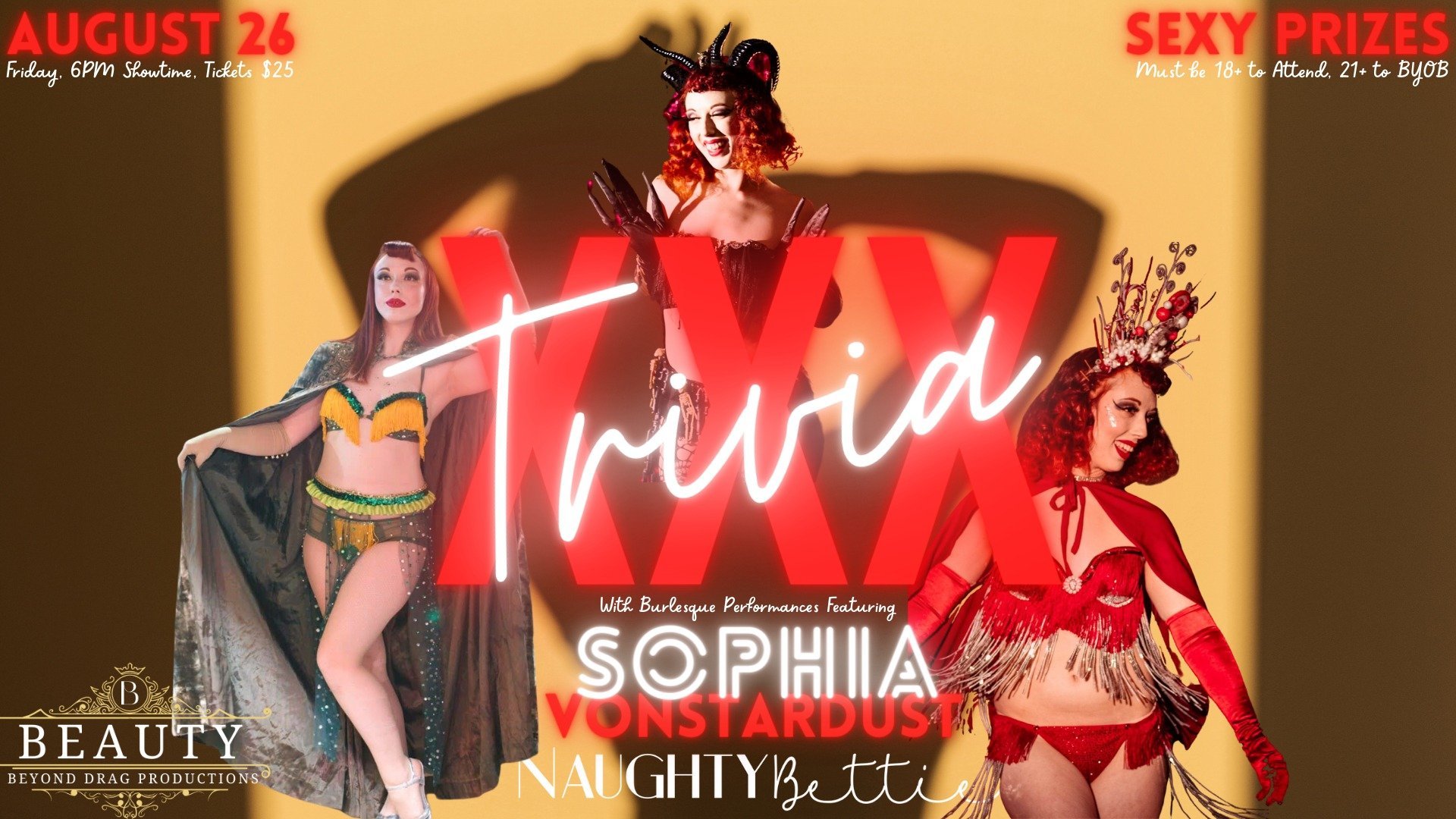 Join the divas of Beauty Beyond Drag Productions as they play drag bingo the only way we know how: NAUGHTY! We’ve got bigger, kinkier prizes than ever before!